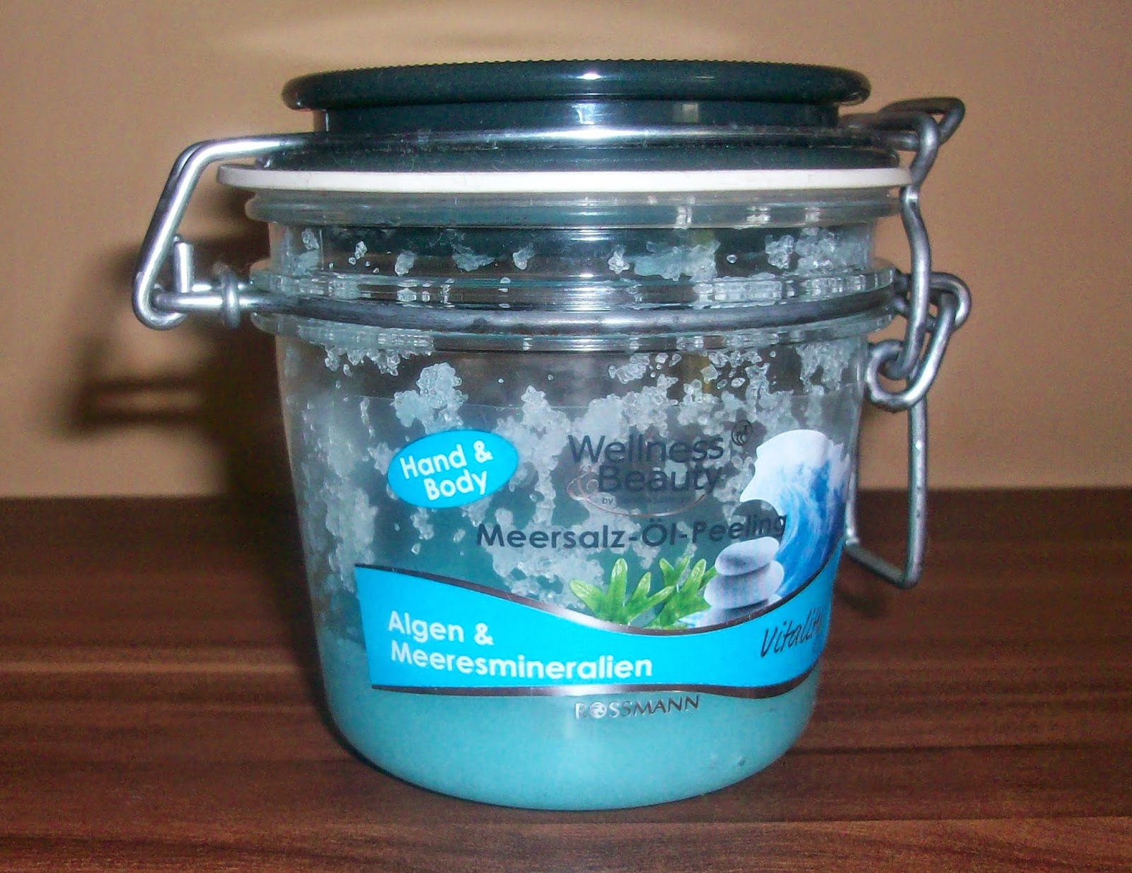 Teraz czas na peeling, który kupiłam jakiś rok temu w Rossmanie w promocji, chyba za jakieś 6.99, nie pamiętam teraz dokładnie. Jest to peeling Wellness & Beauty, Meersalz - Ol - Peeling Algen & Meeresminerallen (Peeling `Algi i minerały morskie`). Spodobało mi się jego opakowanie, ale sam produkt pozytywnie mnie zaskoczył. Jest może nieco zbyt grubo ziarnisty, ale raz na jakiś czas jest bardzo dobry. Dobrze ściera i jednocześnie nawilża lecz z tym że w przeciwieństwie do poprzednika zawiera naturalne olejki. Po jego użyciu ciało jest wygładzone i nawilżone. Zapach jest całkiem przyjemny, taki świeży.